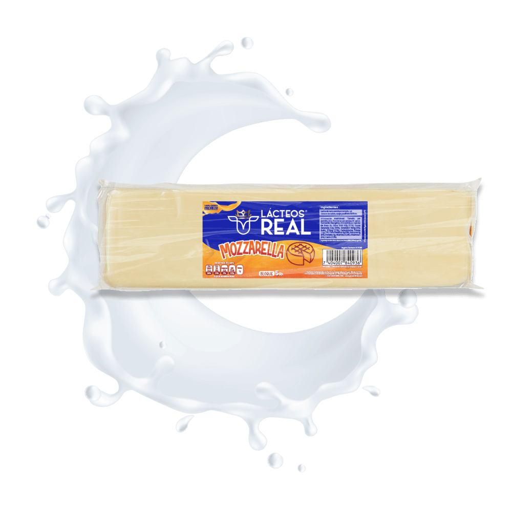 El Queso Mozzarella Lácteos Real comienza con la selección de la calidad adecuada de leche, tiene un aspecto fresco, suave, brillante y de apariencia húmeda.