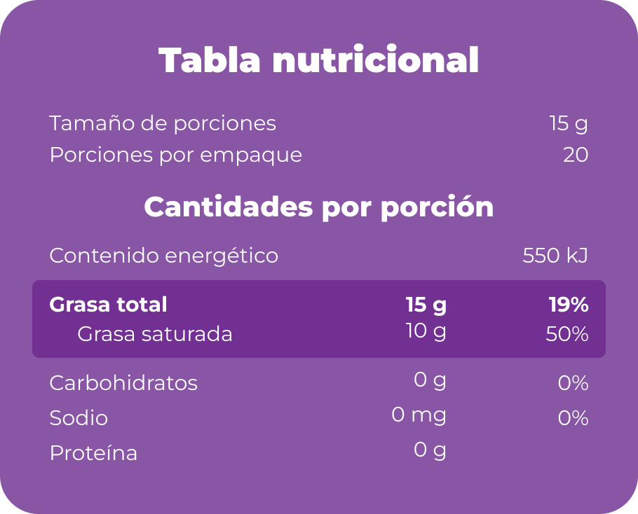 Nuestro Ghee Lácteos Real es una grasa natural versátil, rendidora y deliciosa que mejora el sabor de los alimentos y permite cocinar a altas temperaturas sin perder calidad.