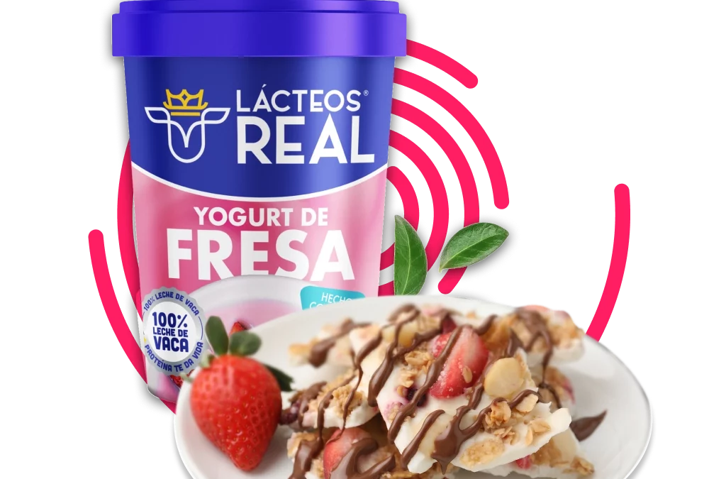 Extender el yogurt Lácteos Real de Fresa sobre una bandeja en capa delgada.